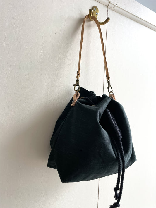 Haná - Handbag/Crossbody bag: Black waxed linen