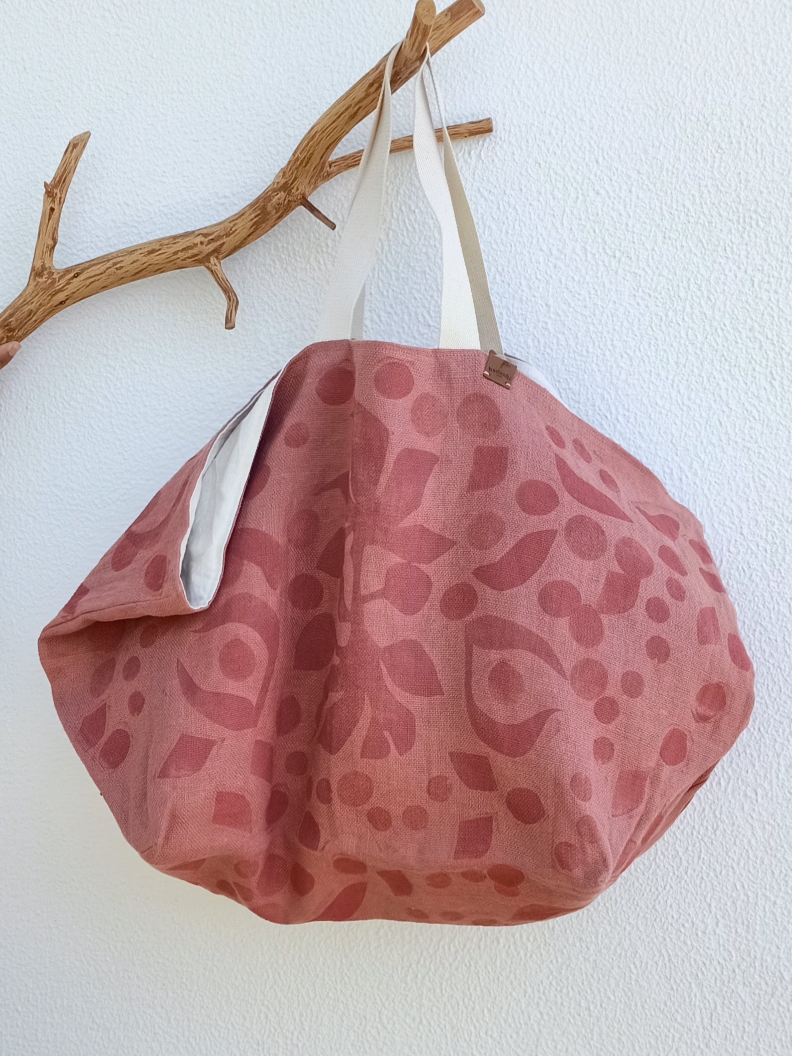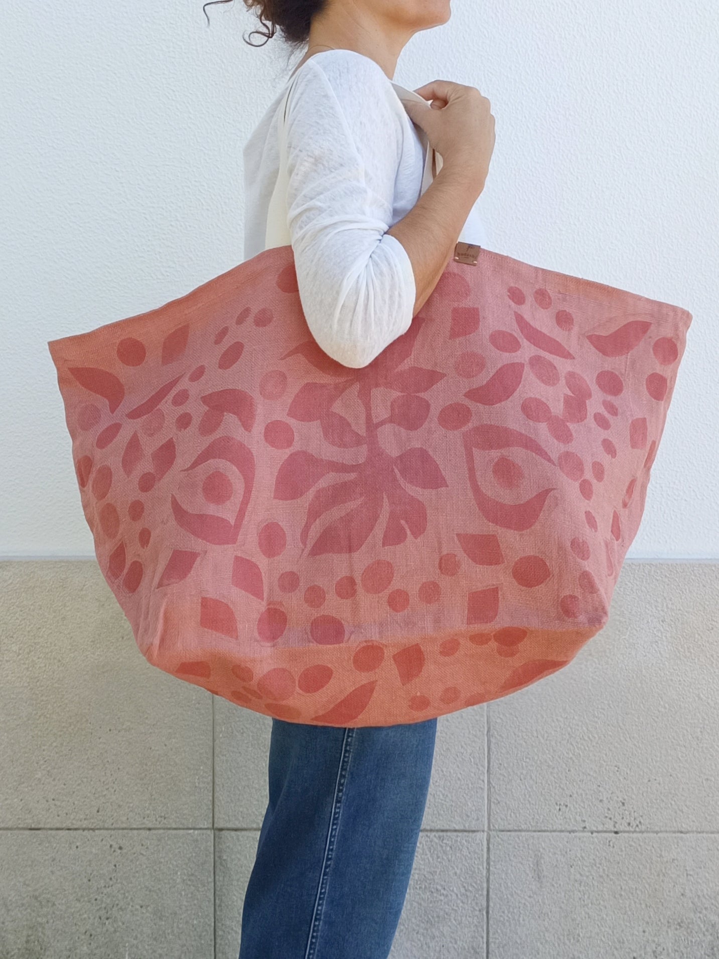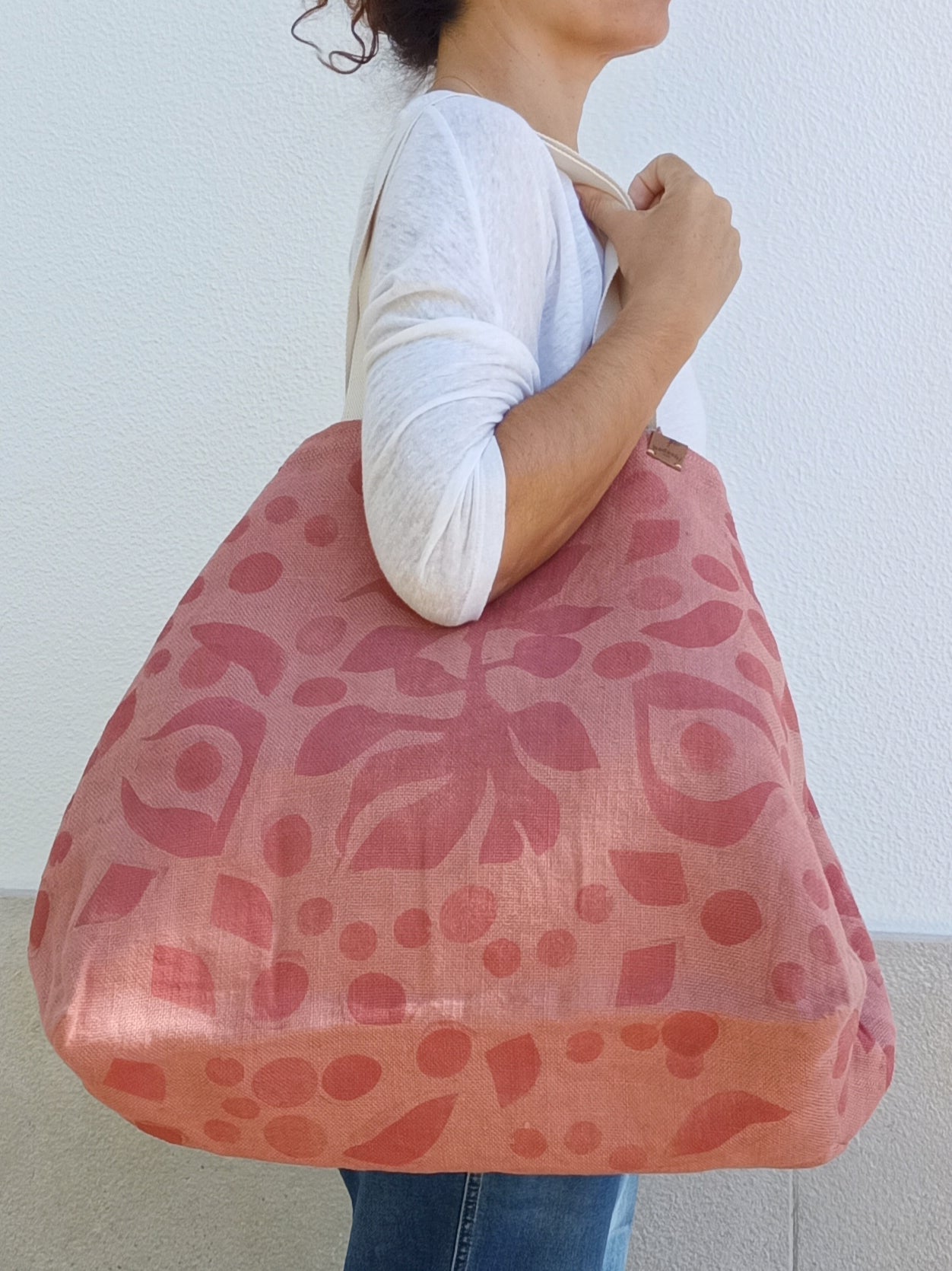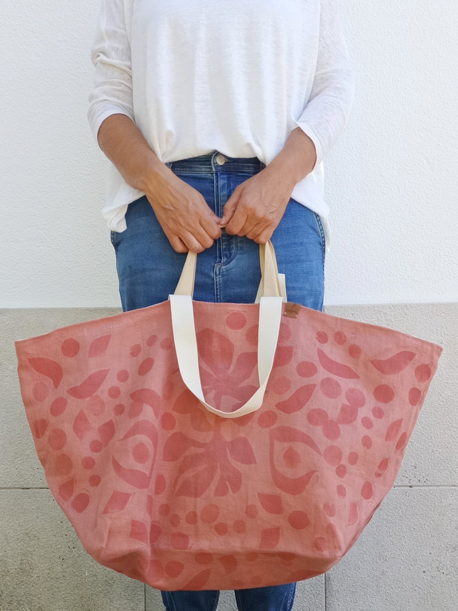 This is a big-sized beach bag /shopping bag (boho style), with a simple design to take everything you need. It´s the perfect bag for shopping or carrying a lot of stuff (like going to the beach or a picnic).