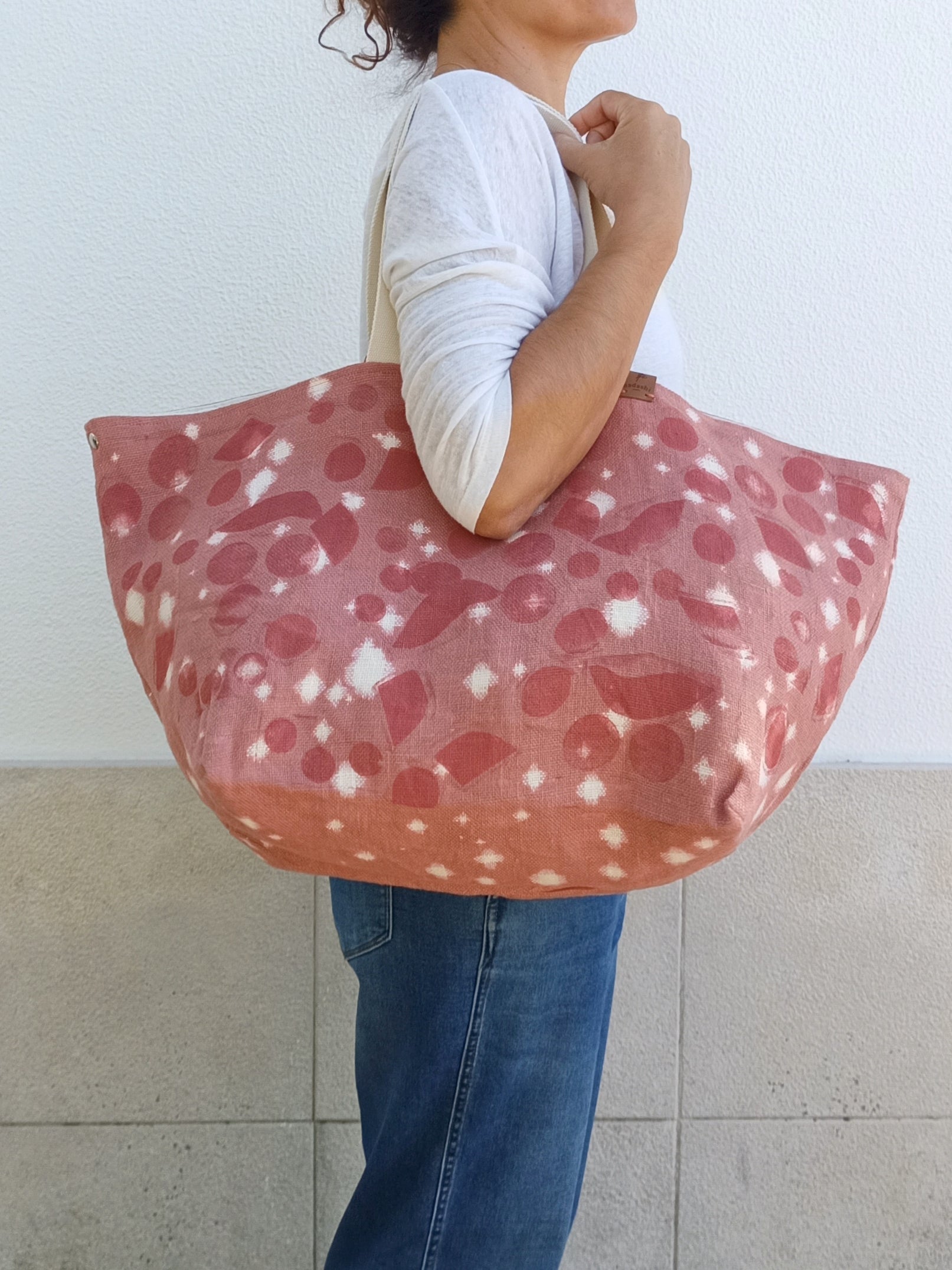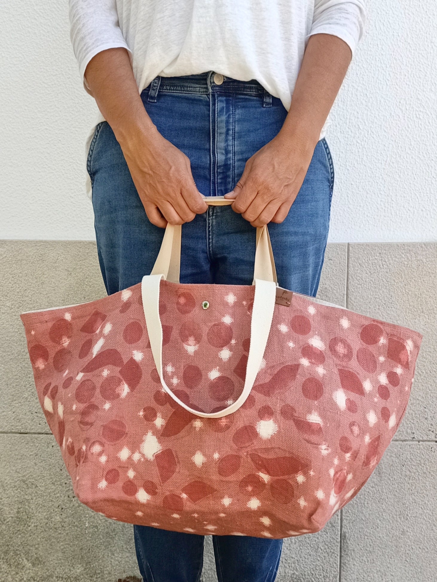 Big-sized tote bag/shopping bag (boho style), with a minimal design. The perfect everyday bag to take everything with you. It´s the perfect tote, your flawless shopping bag, or the right bag to carry a lot of stuff to a picnic while, still, being comfortable.
