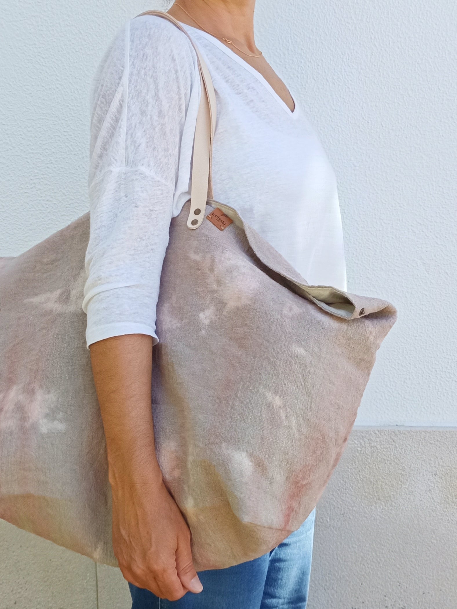 Big-sized tote bag/shopping bag (boho style), with a minimal design. The perfect everyday bag to take everything with you. It´s the perfect tote, your flawless shopping bag, or the right bag to carry a lot of stuff to a picnic while, still, being comfortable.