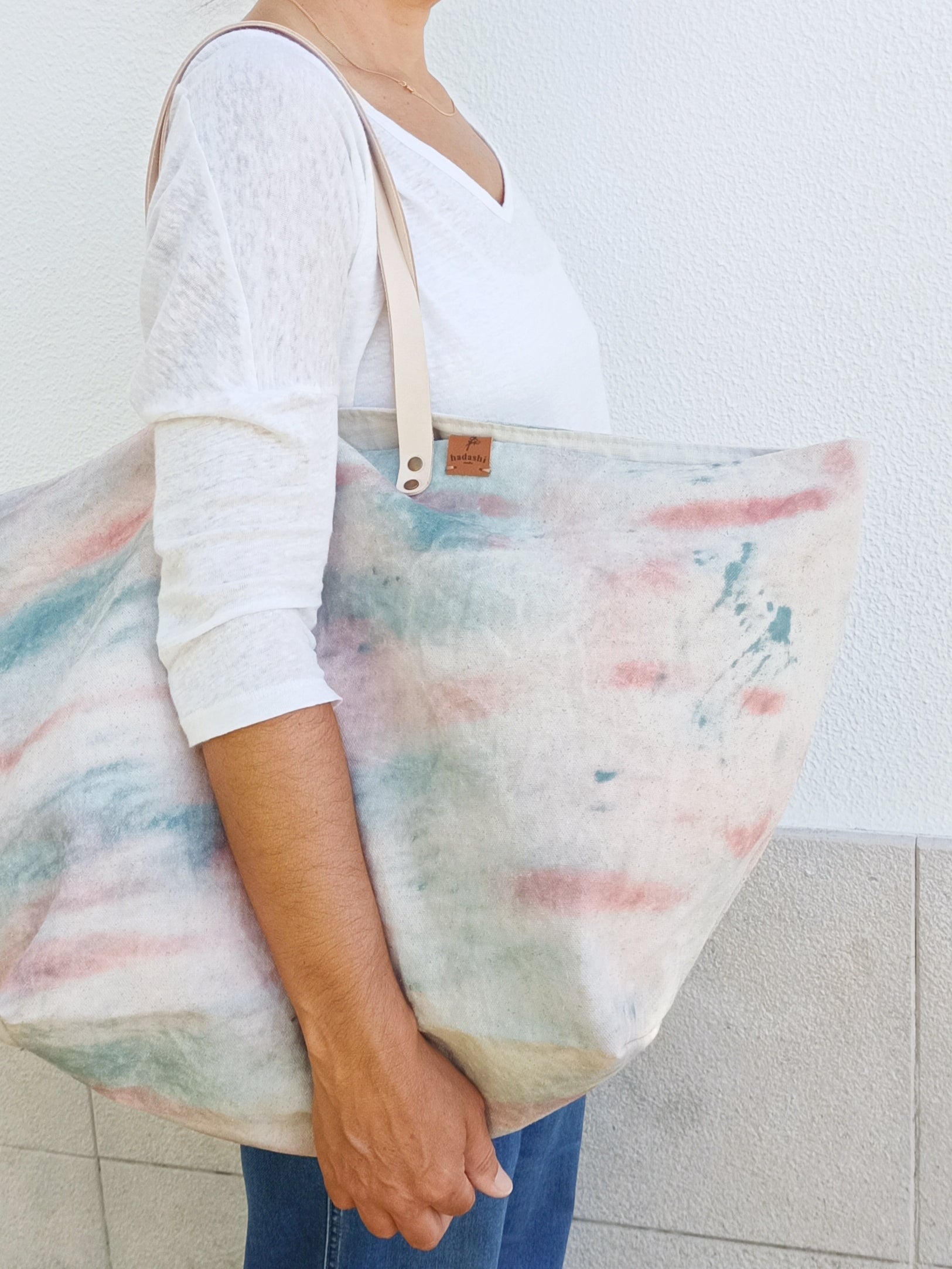 Big-sized tote bag/shopping bag (boho style), with a minimal design. The perfect everyday bag to take everything with you. It´s the perfect tote, your flawless shopping bag, or the right bag to carry a lot of stuff to a picnic while, still, being comfortable.