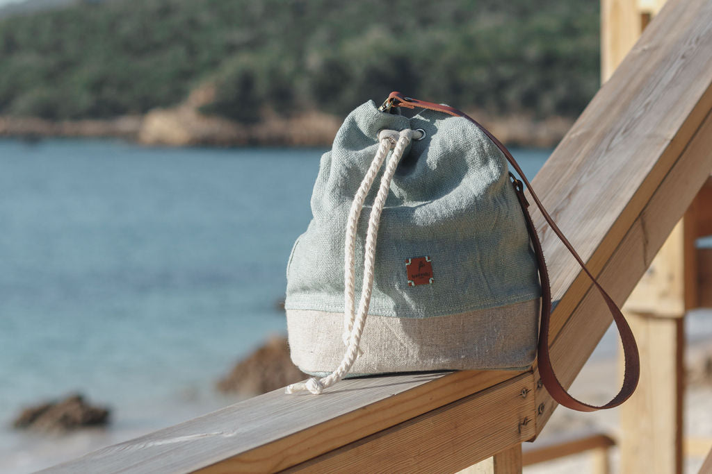 This bucket bag is a roomy bag. It has a flat bottom that allows the bag to sit upright, an open-top, a drawstring closure, and includes a shoulder strap. It´s a statement piece and will stand out from your outfit, whether for a casual weekend or an evening.