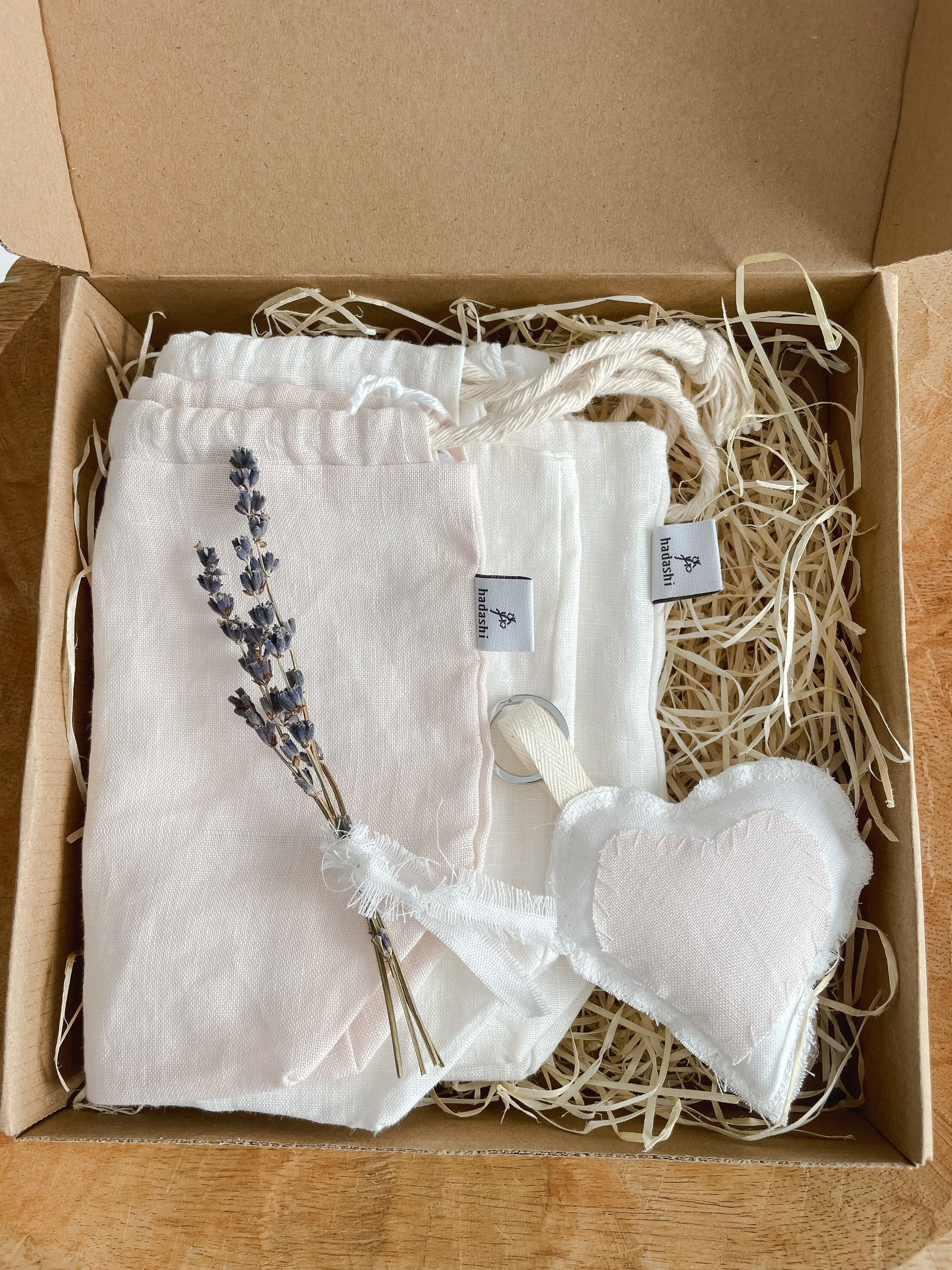 Treat yourself or a loved one to a beautifully crafted Linen Lover Gift Box. This set includes carefully designed, functional accessories made from 100% linen, certified for quality and sustainability. Handcrafted in our studio, each item is a thoughtful blend of elegance and practicality.