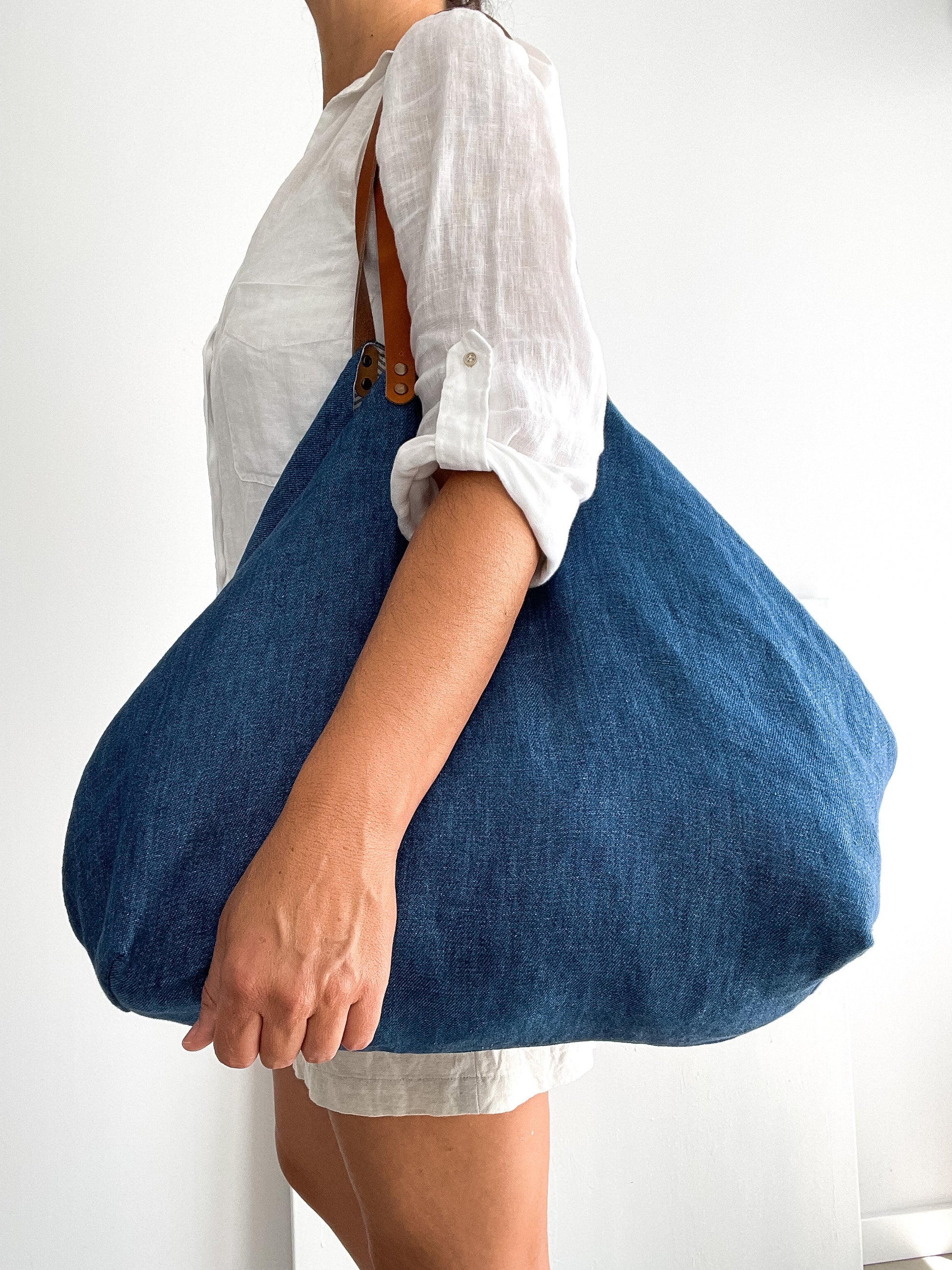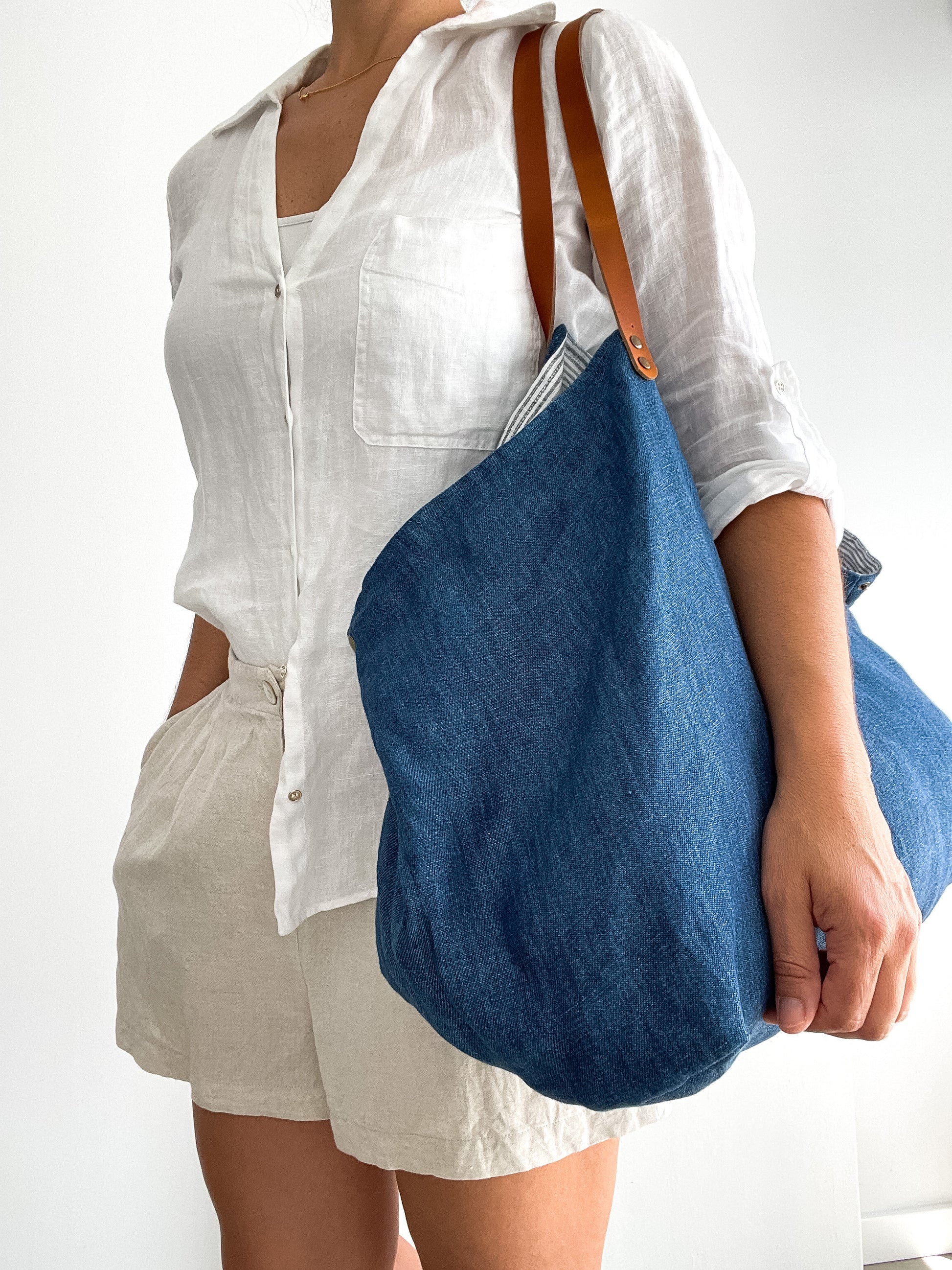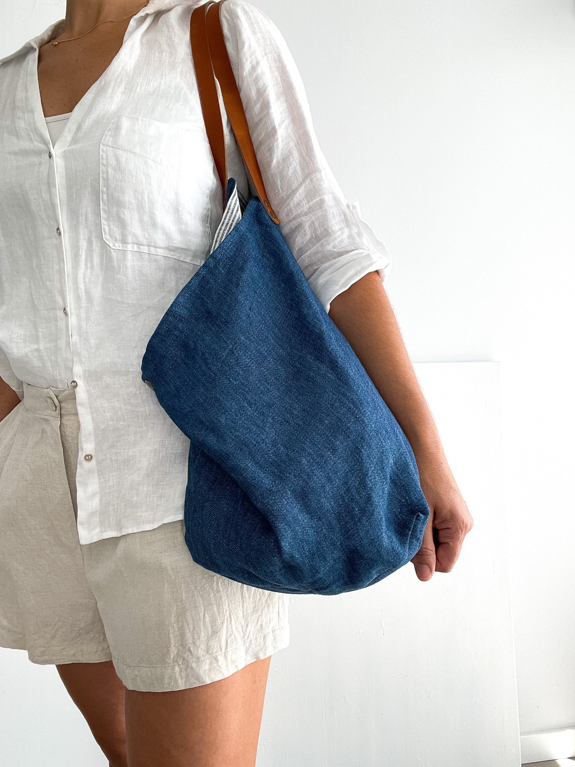 MIDI bag: indigo, leather handles