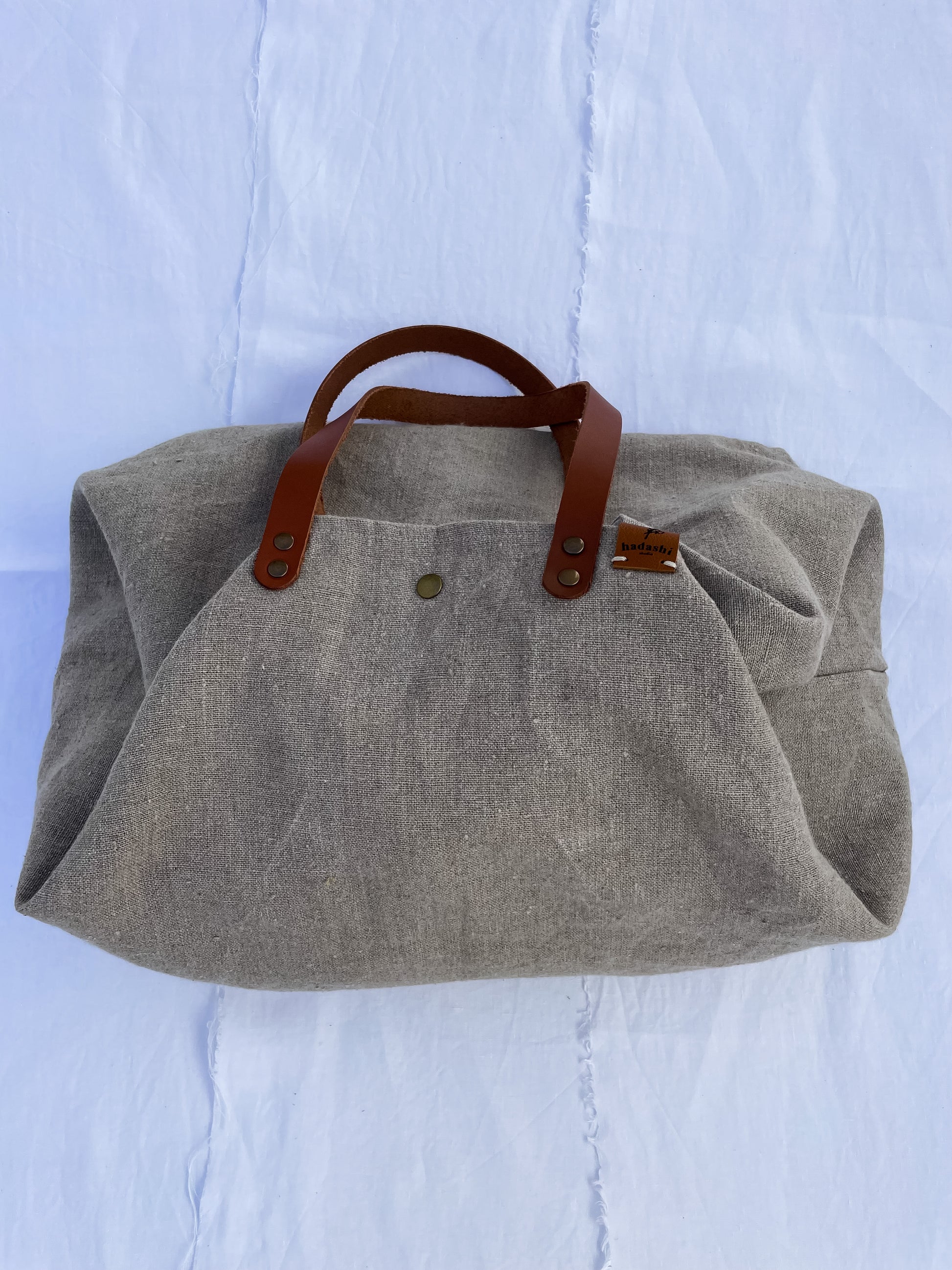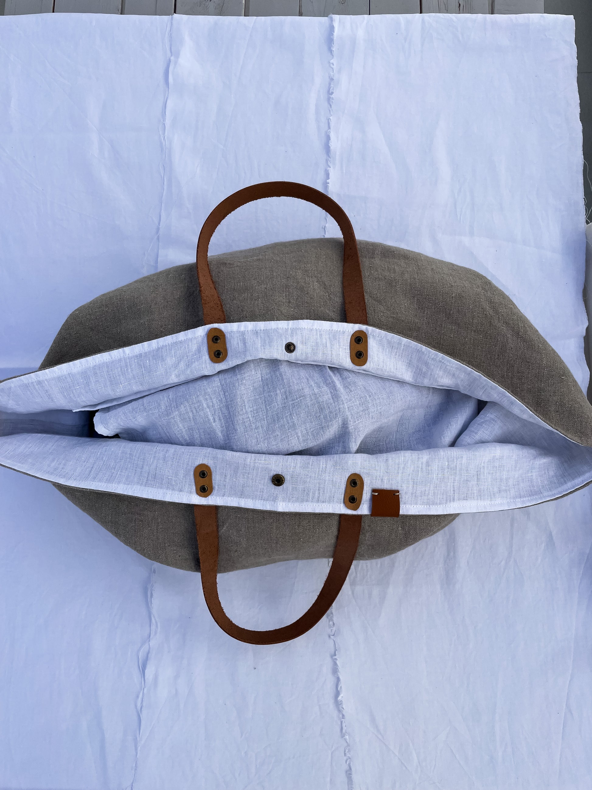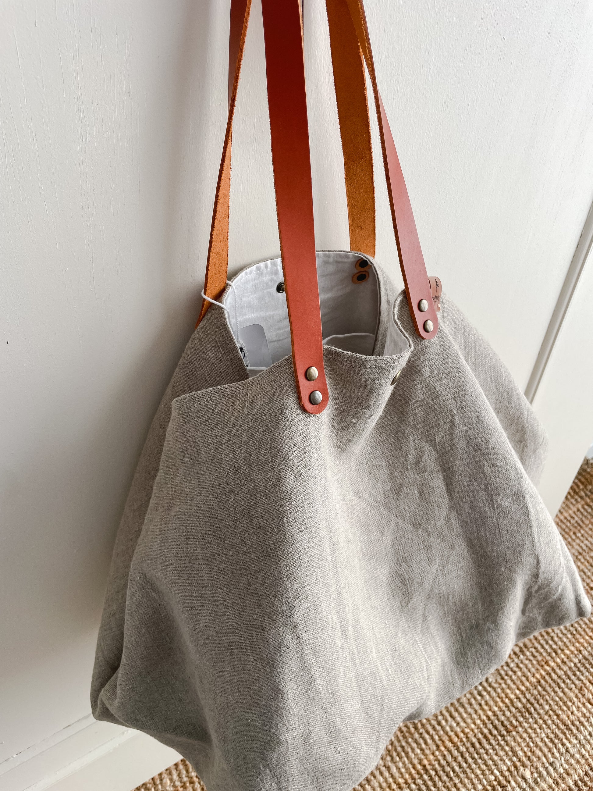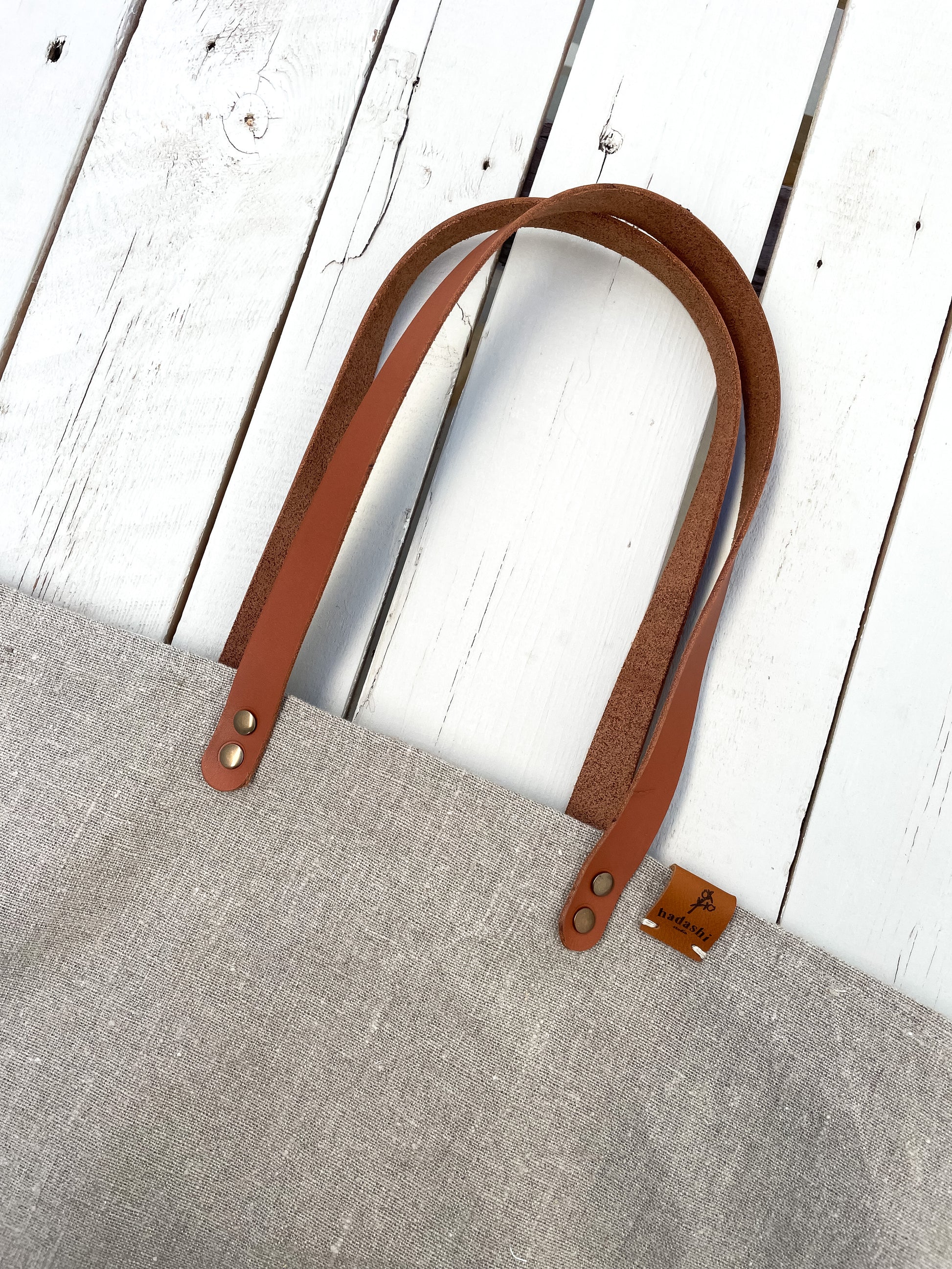 Linen fabric and vegetable-tanned leather will age beautifully.
