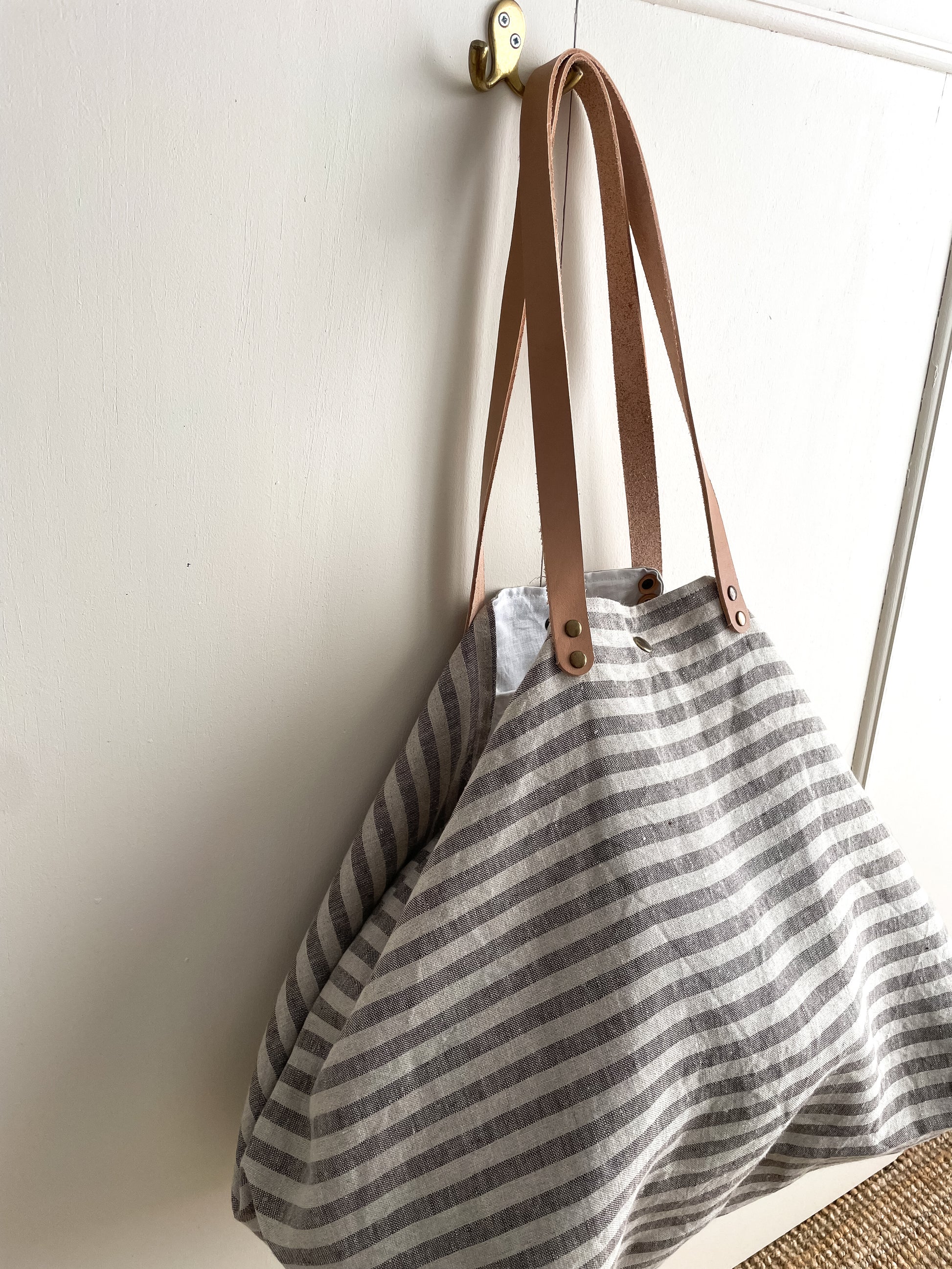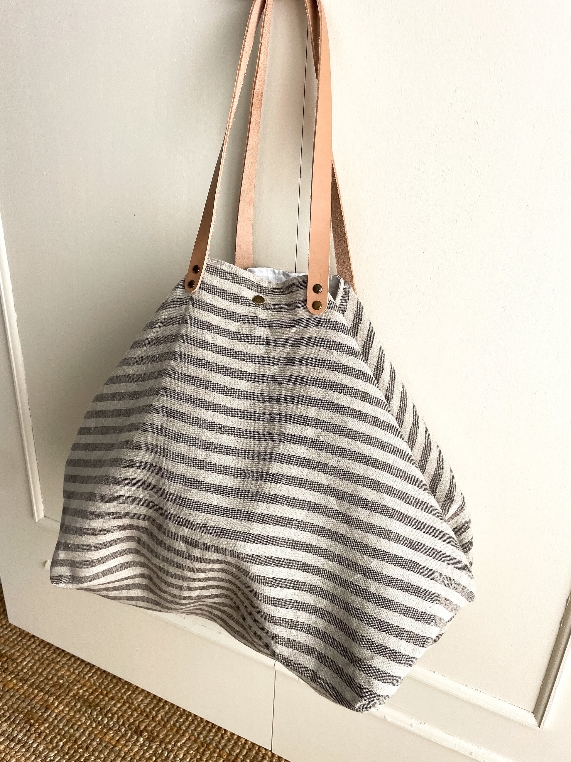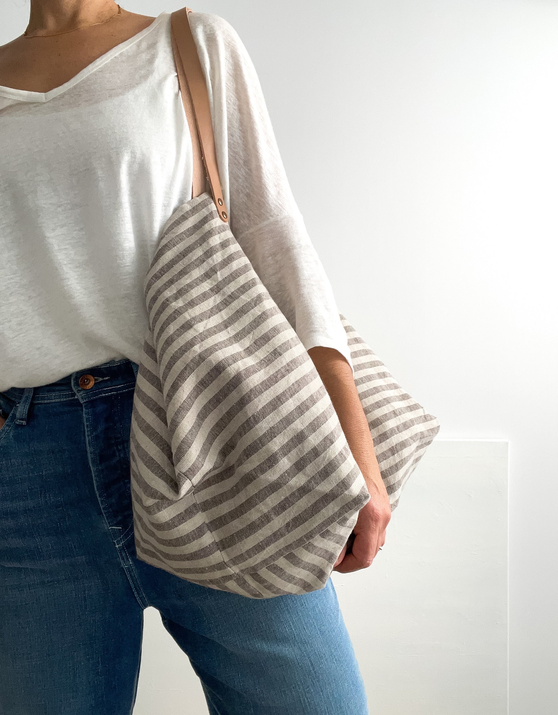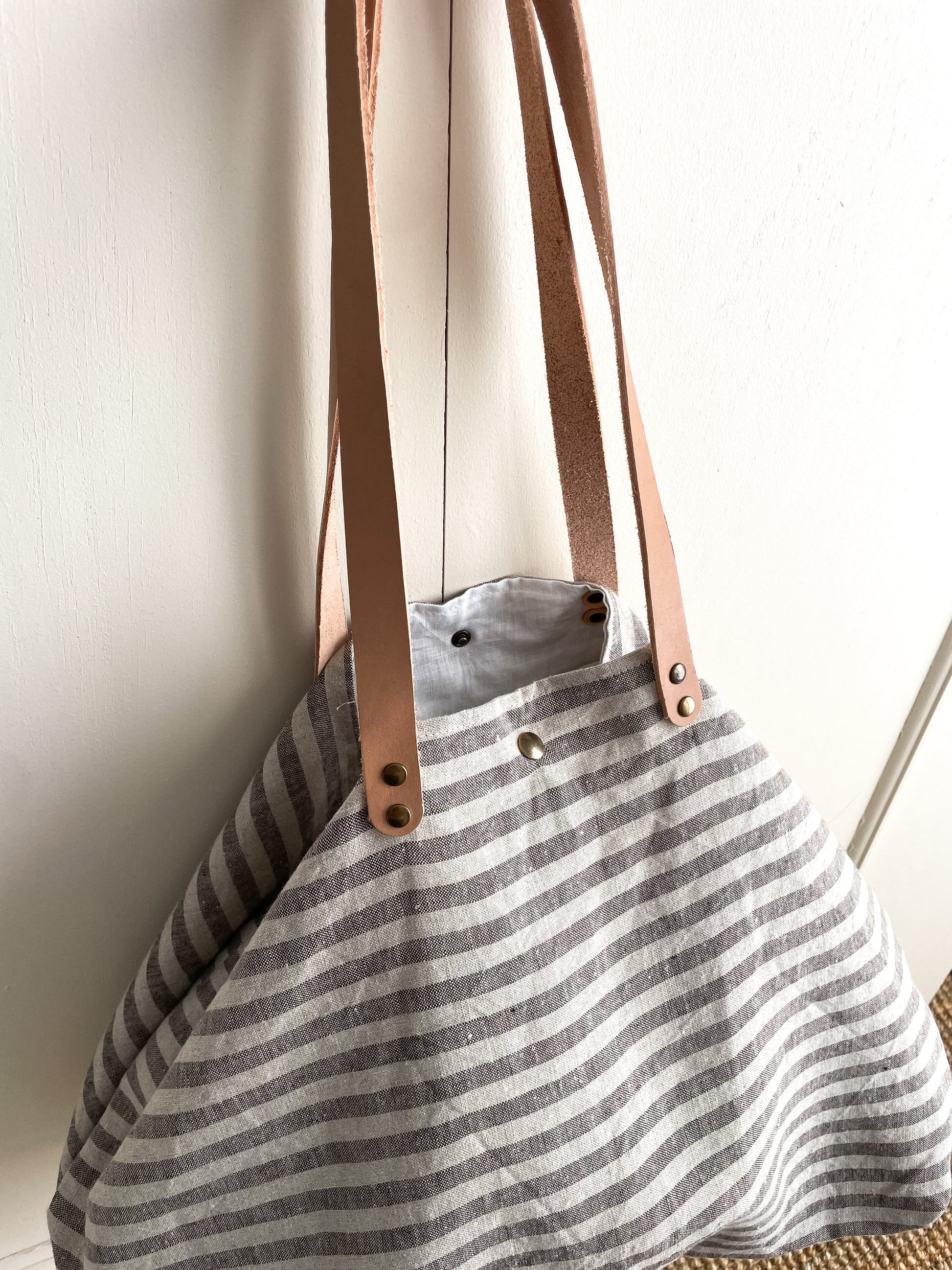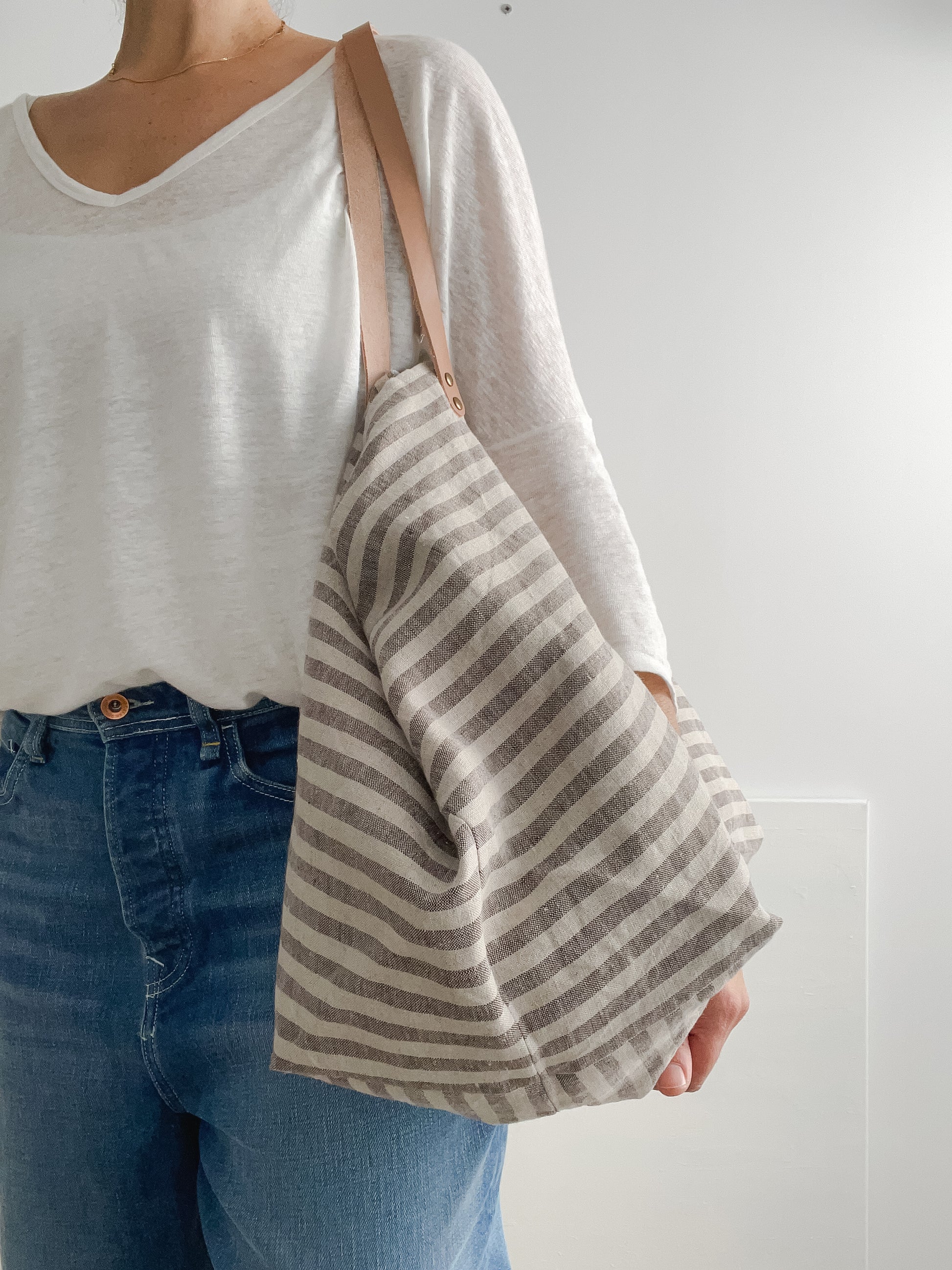 Linen fabric and vegetable-tanned leather will age beautifully.