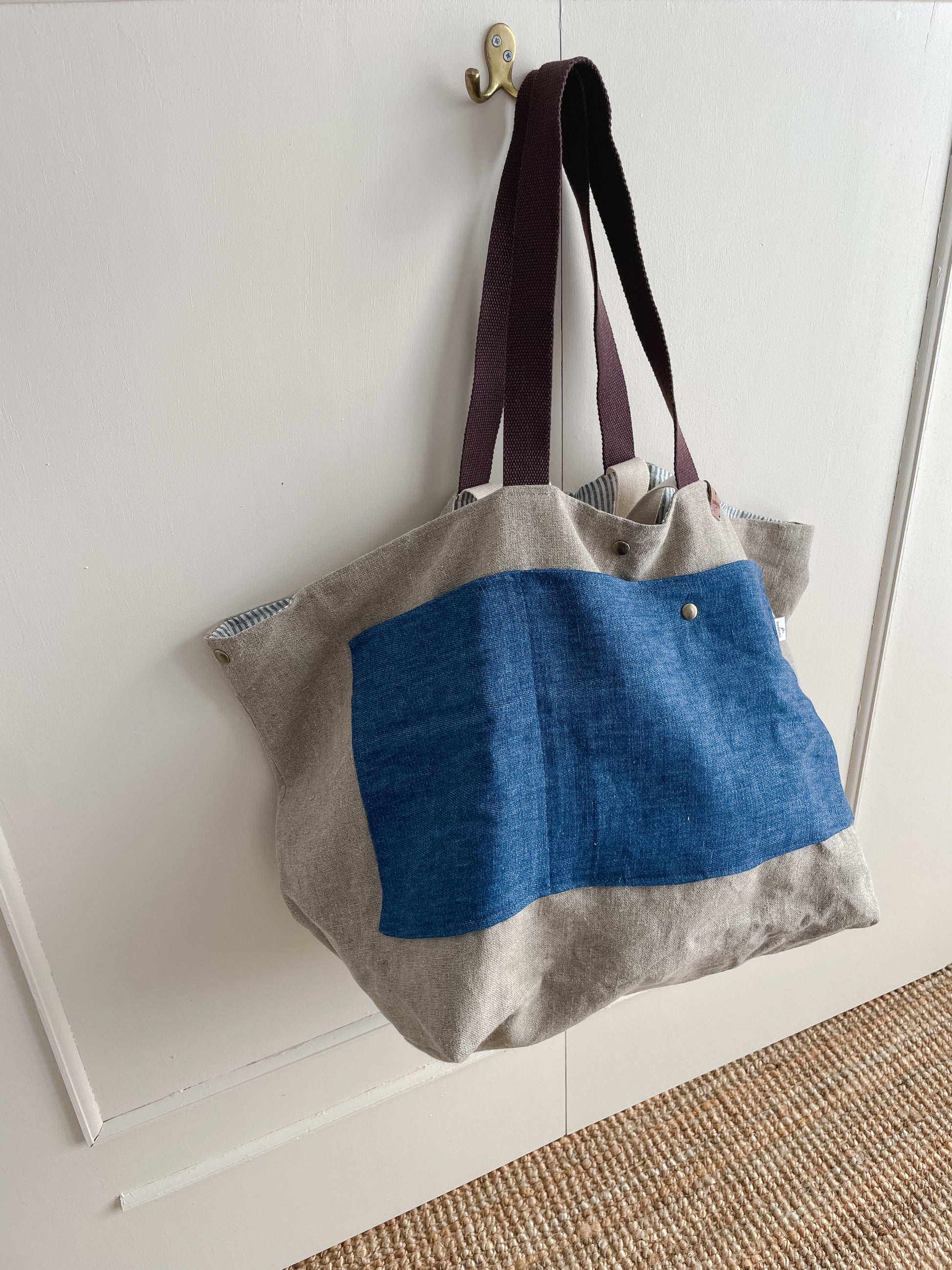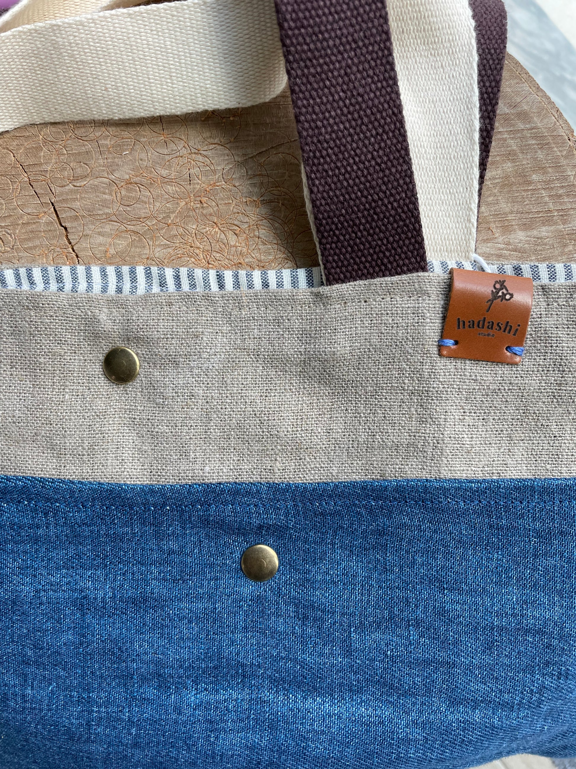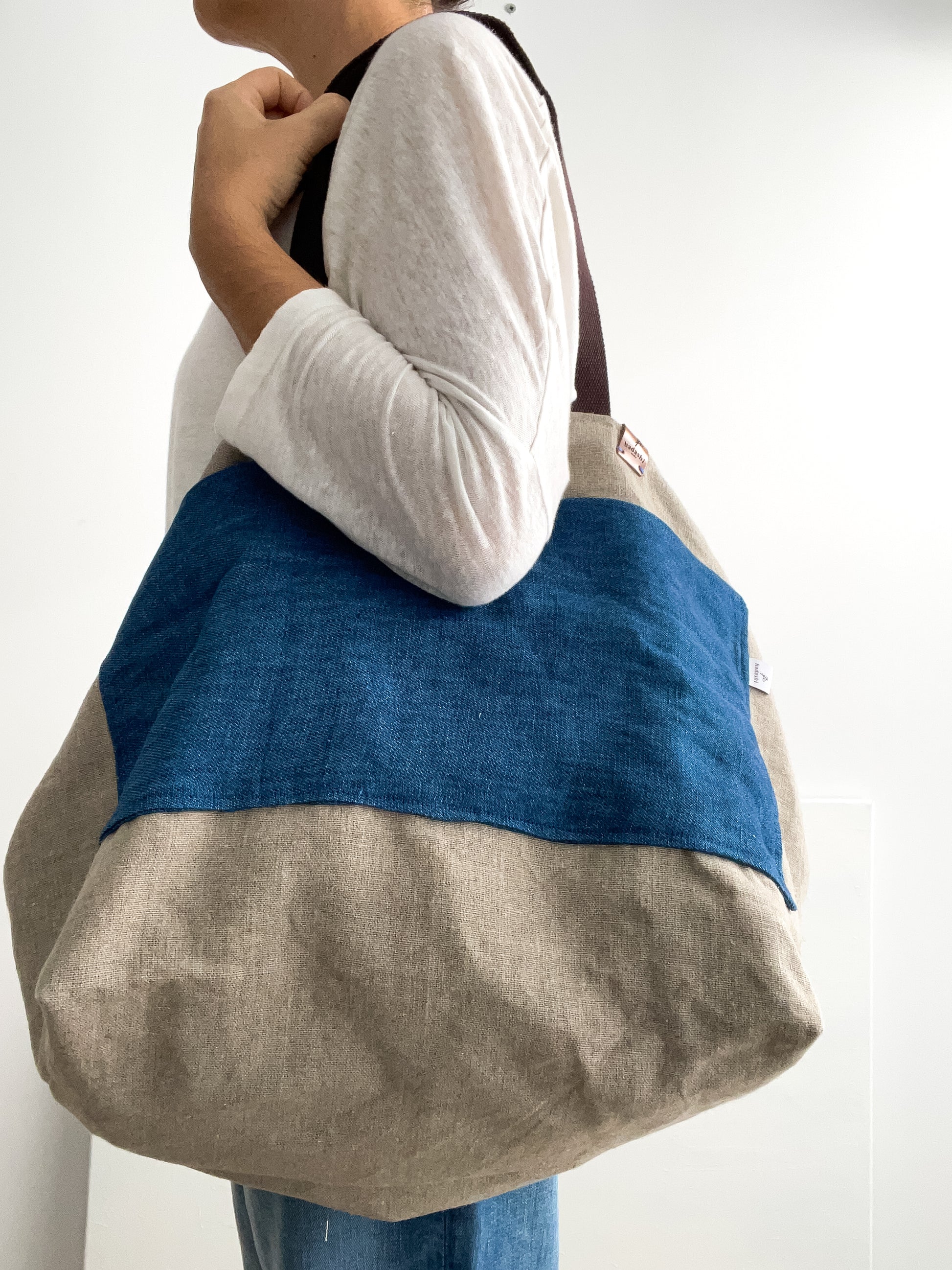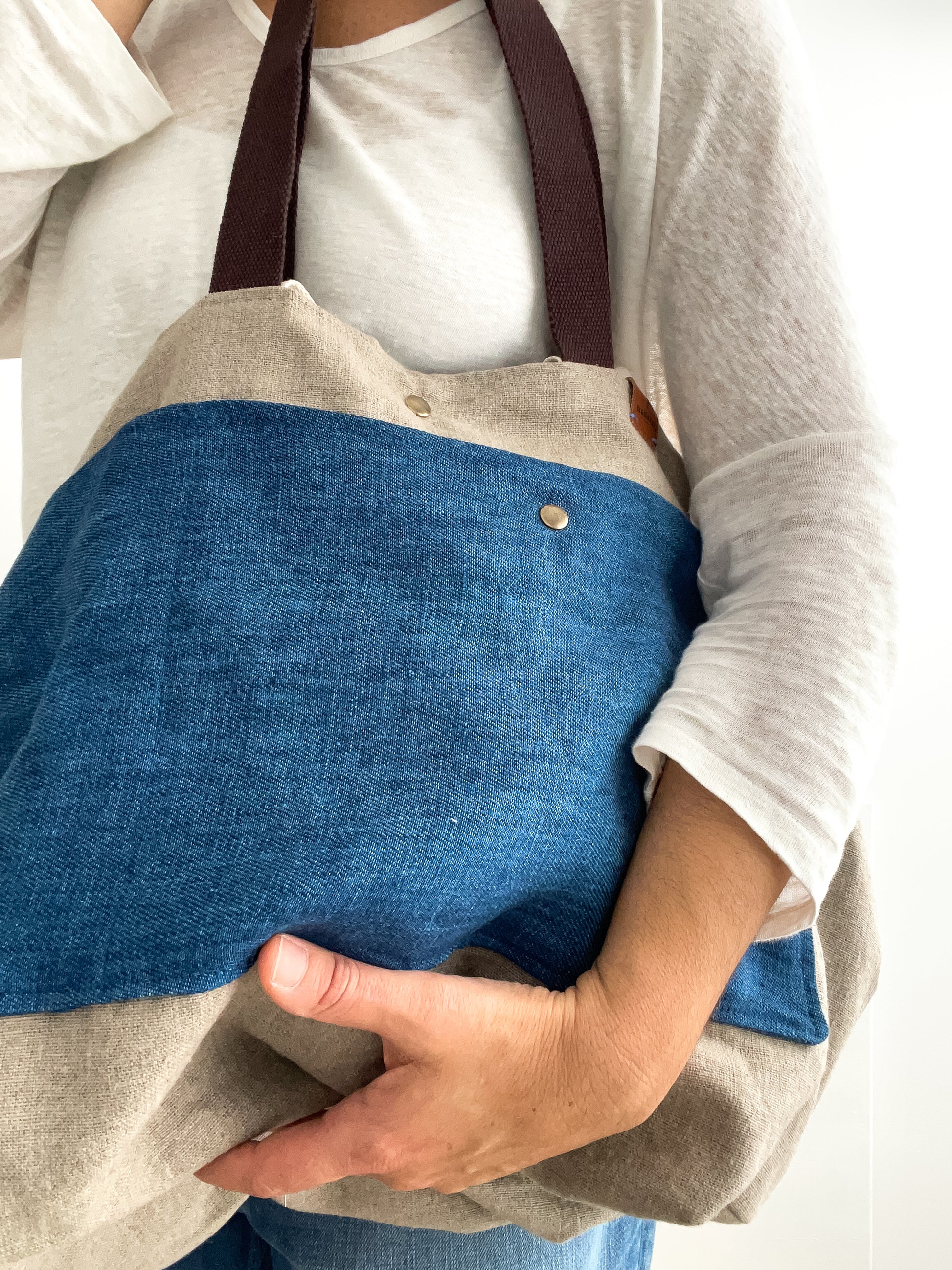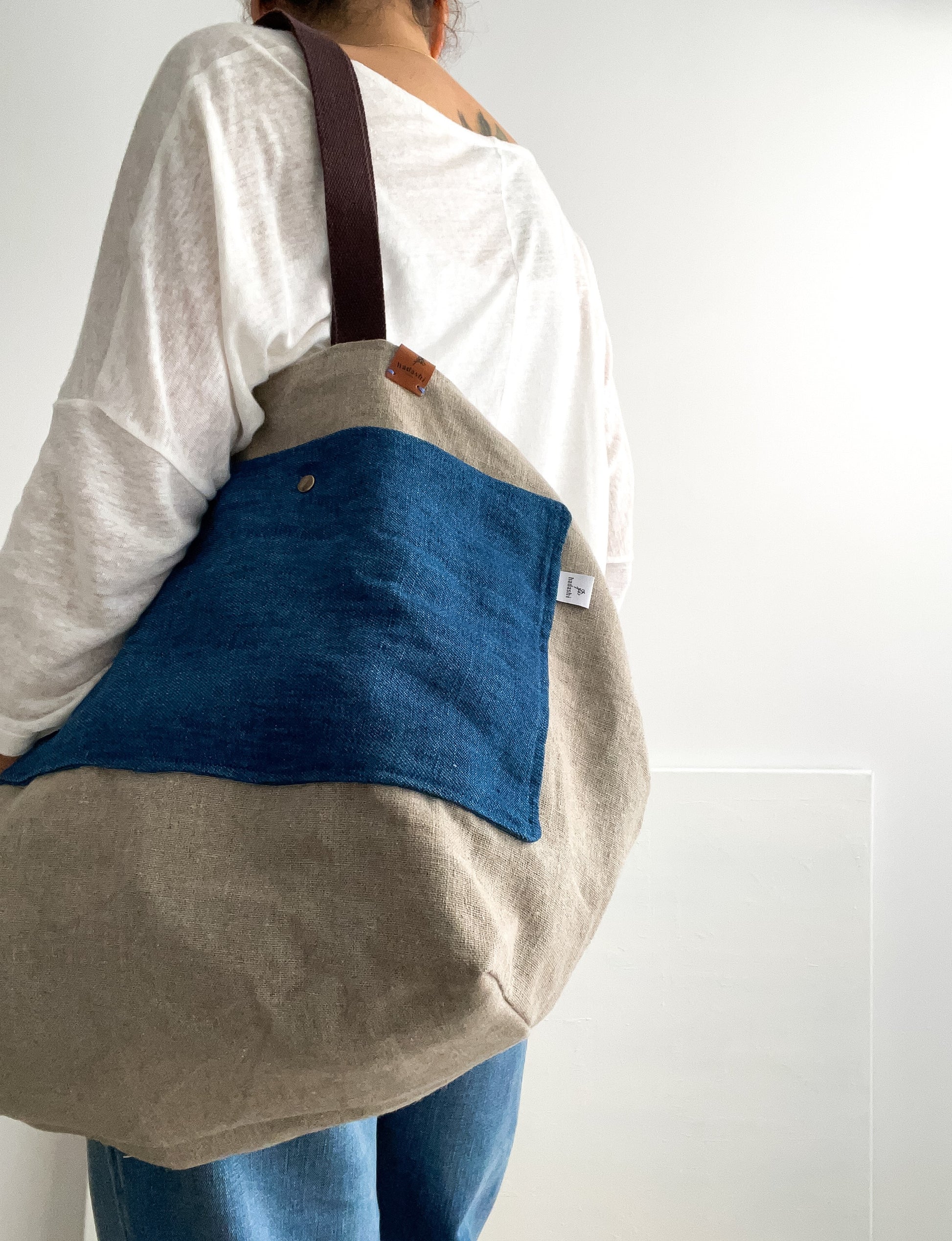 Outside material: 100% pure linen (pre-washed, with European Flax and OEKO-TEX S100 certificate, and 100% indigo dyed linen details in the exterior pocket.