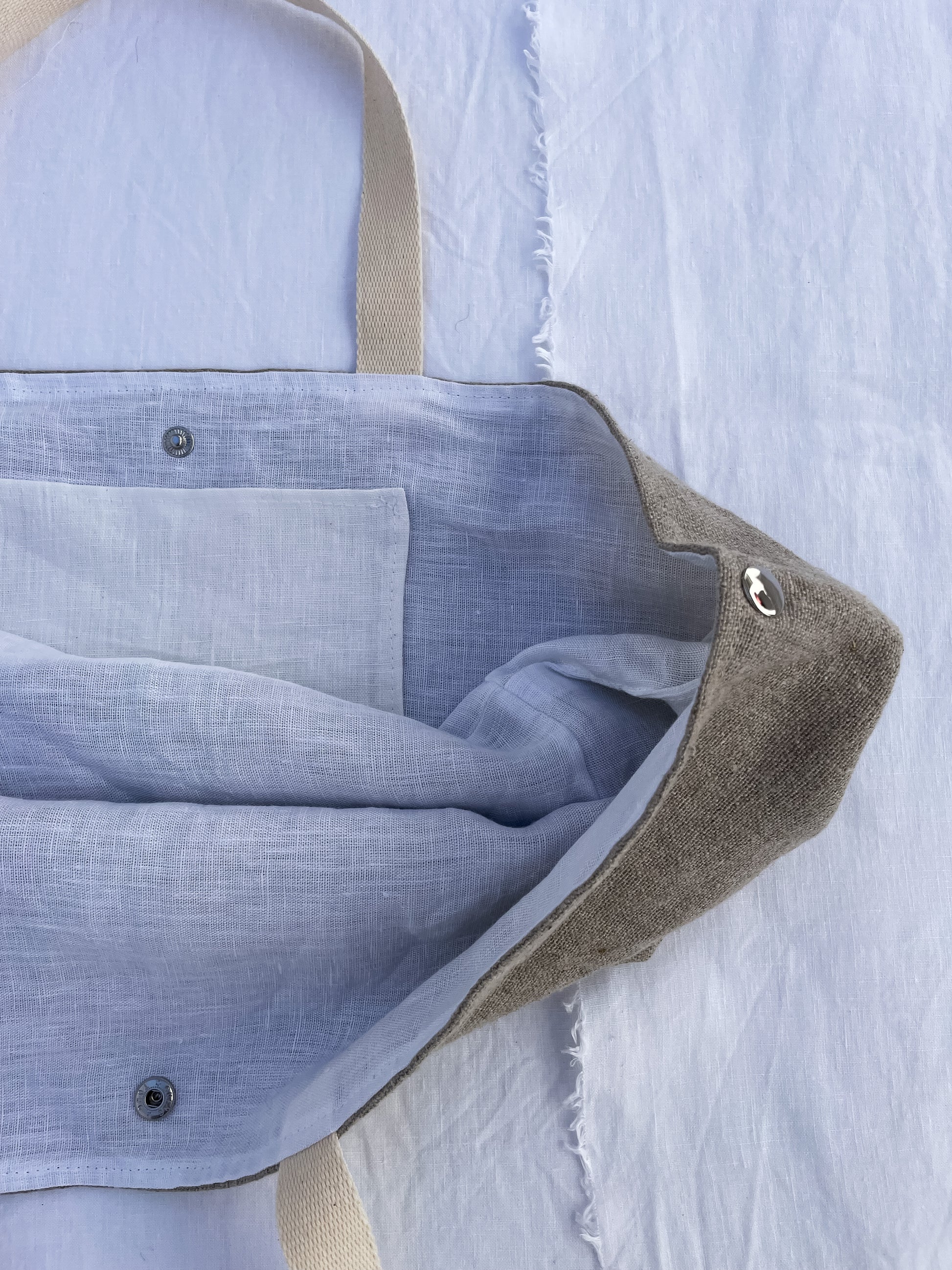 Lining: Pre-washed linen provenient from deadstock from the textile industry. In the case of deadstock fabric, we cannot be sure of the exact composition.