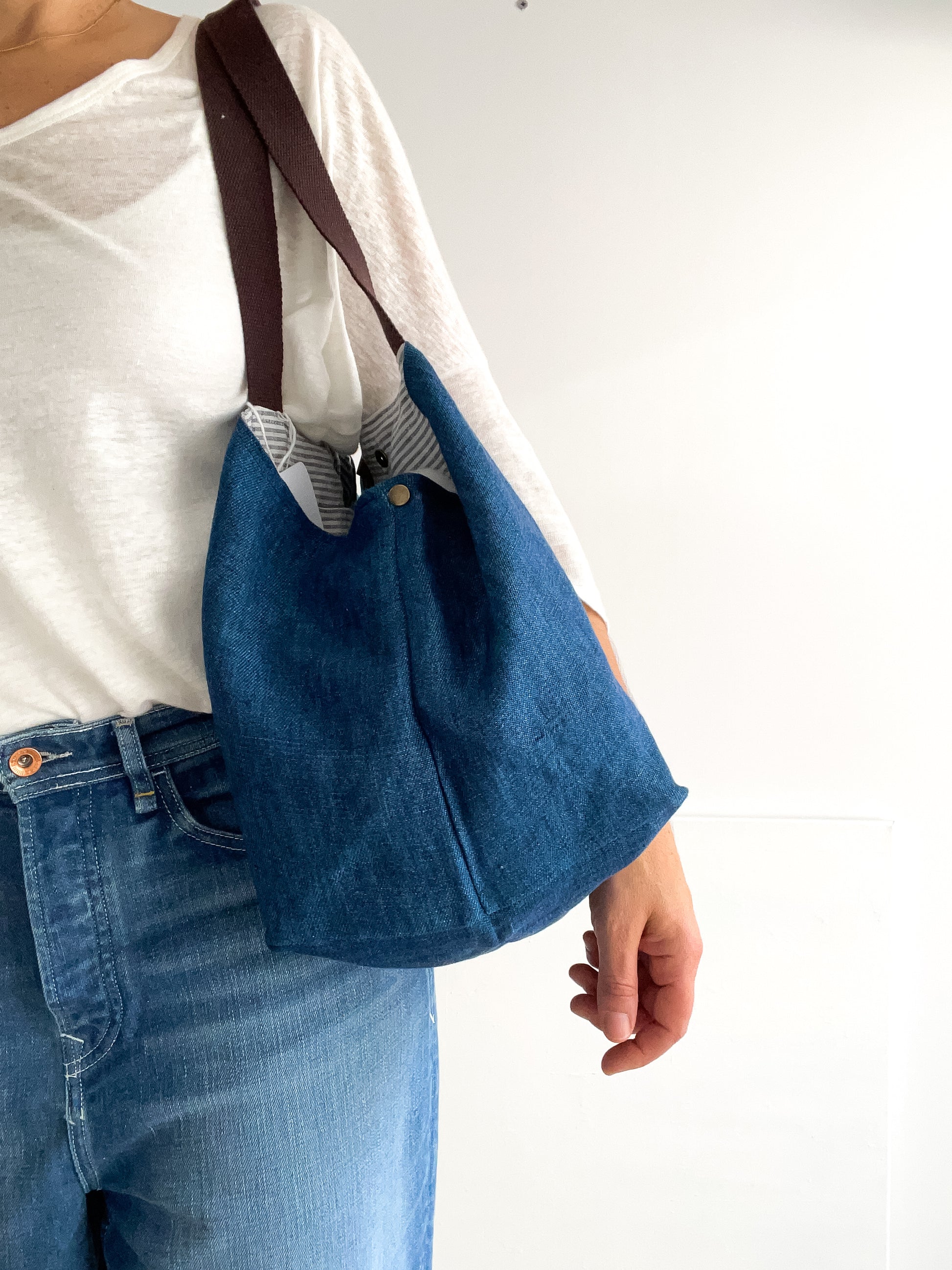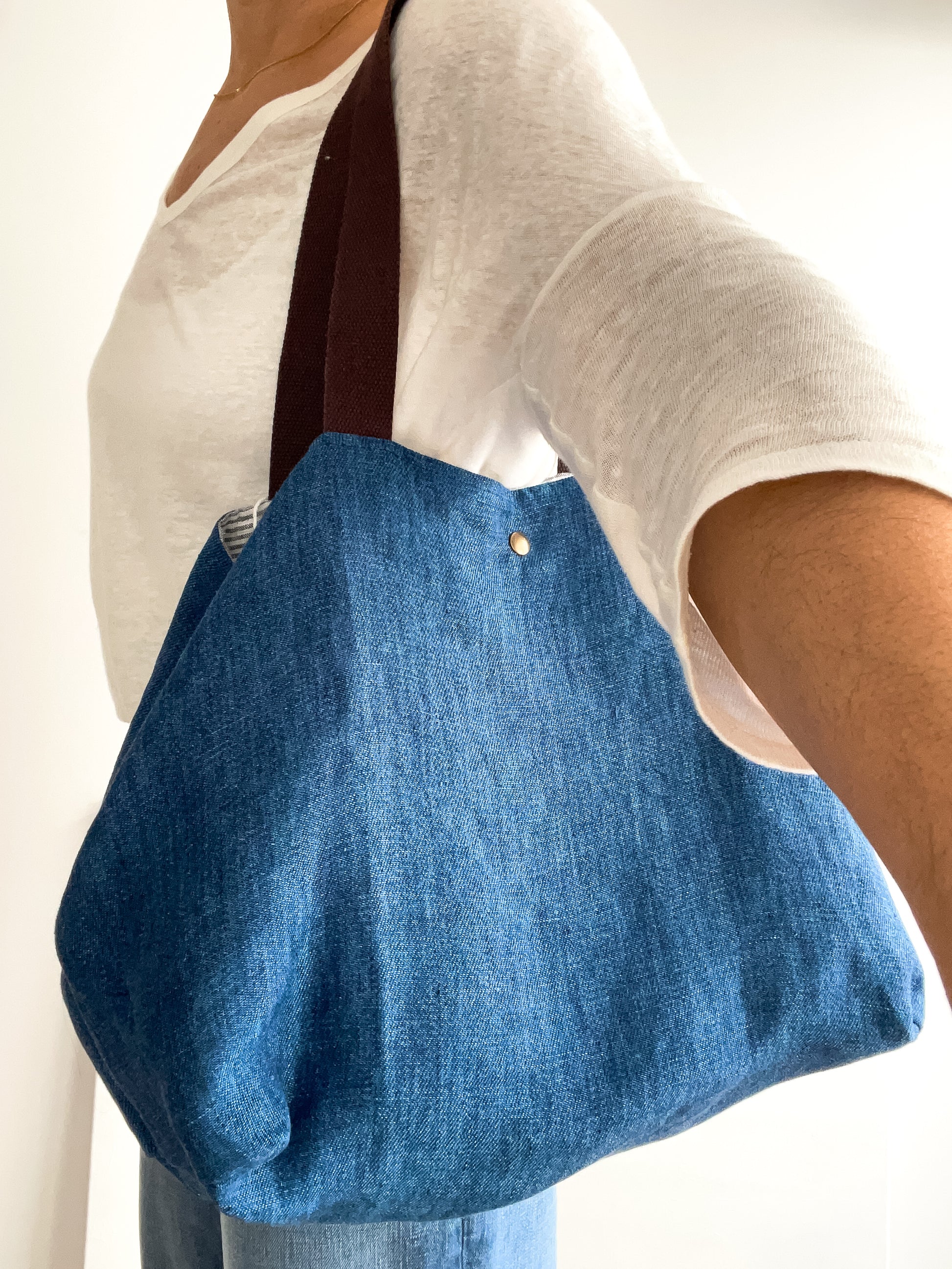 PETITE bag: indigo + brown