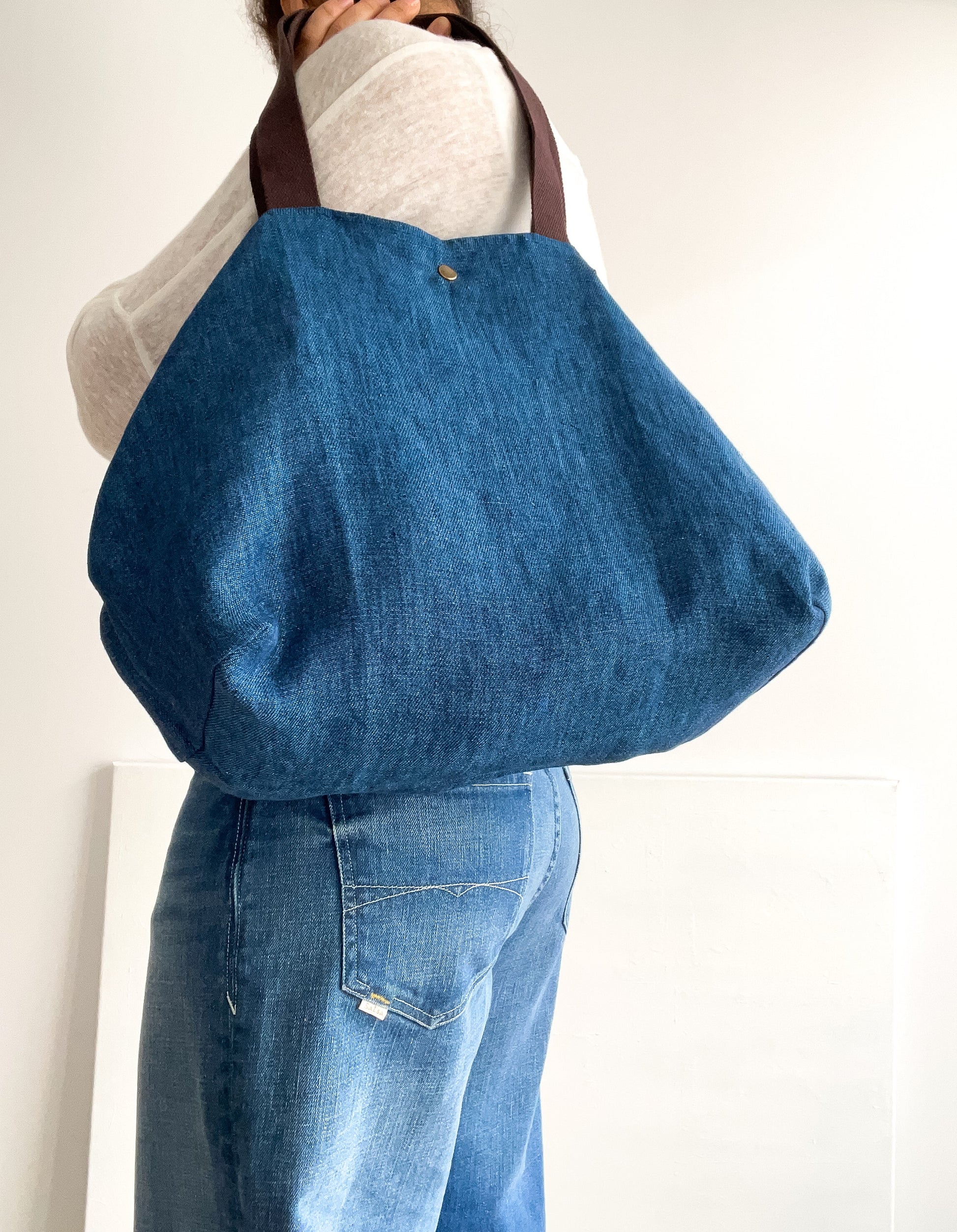 Regular-sized tote bag, everyday bag or shopping bag (boho style), with a simple design.