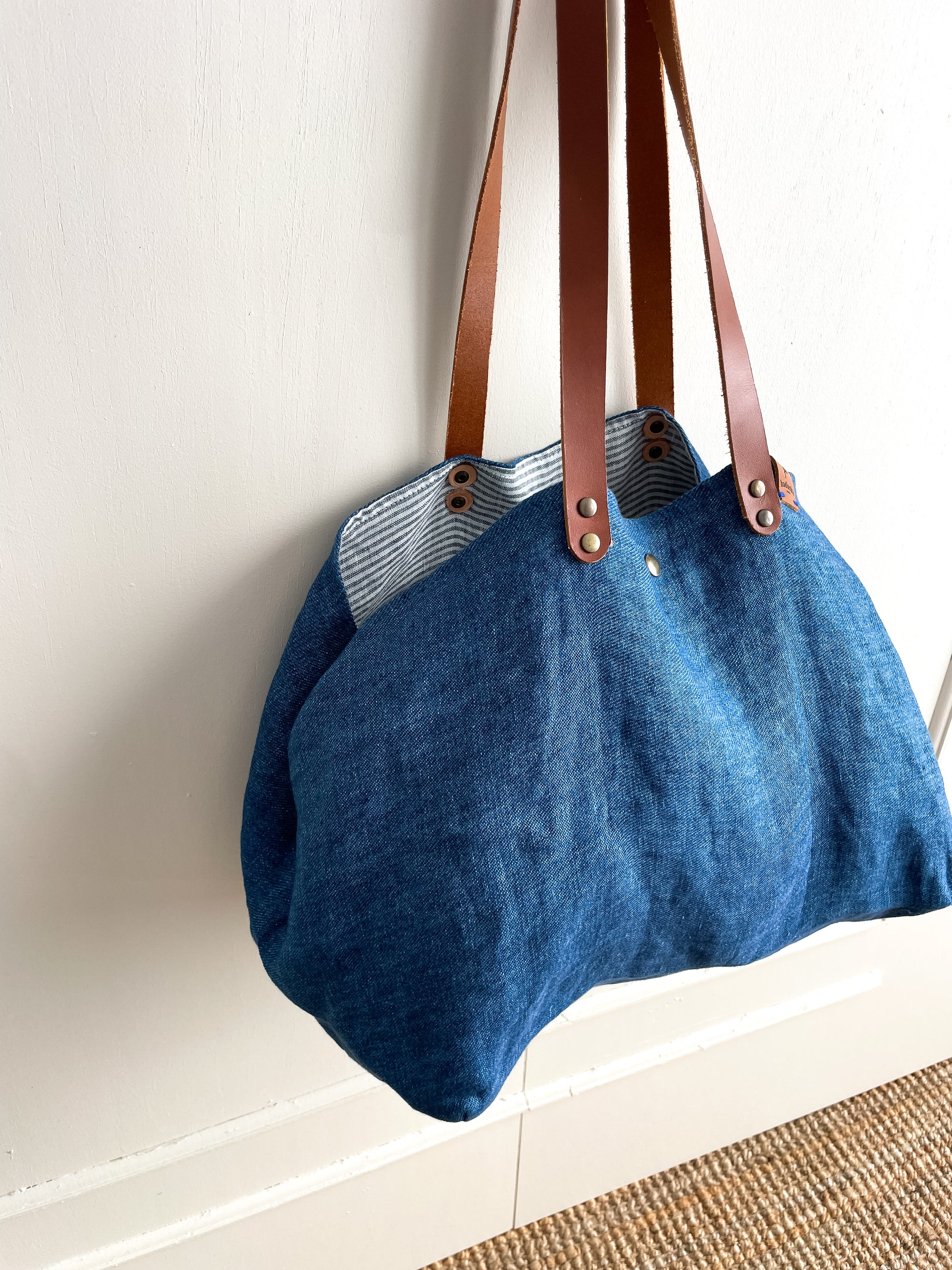 Regular-sized tote bag, everyday bag or shopping bag (boho style), with a simple design.