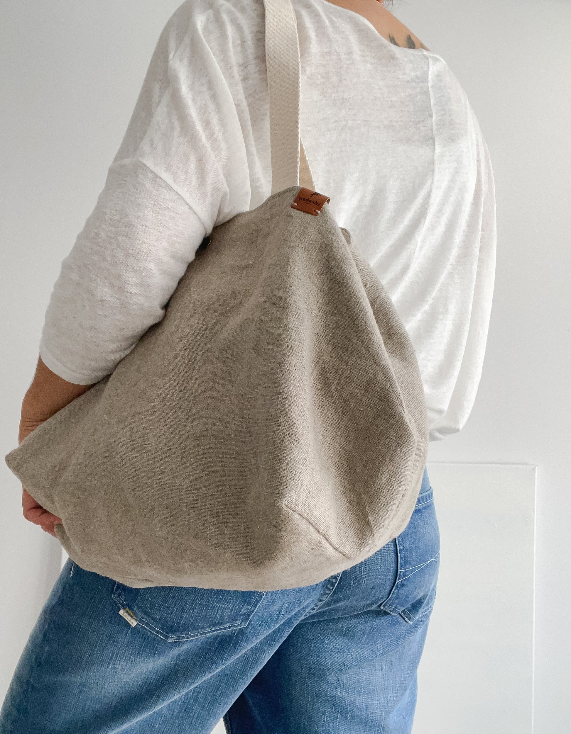 Undyed, natural, raw, beige linen is timeless and fits every style. Natural slubs (small knots or bumps in the fabric that occur during the weaving process) may appear.