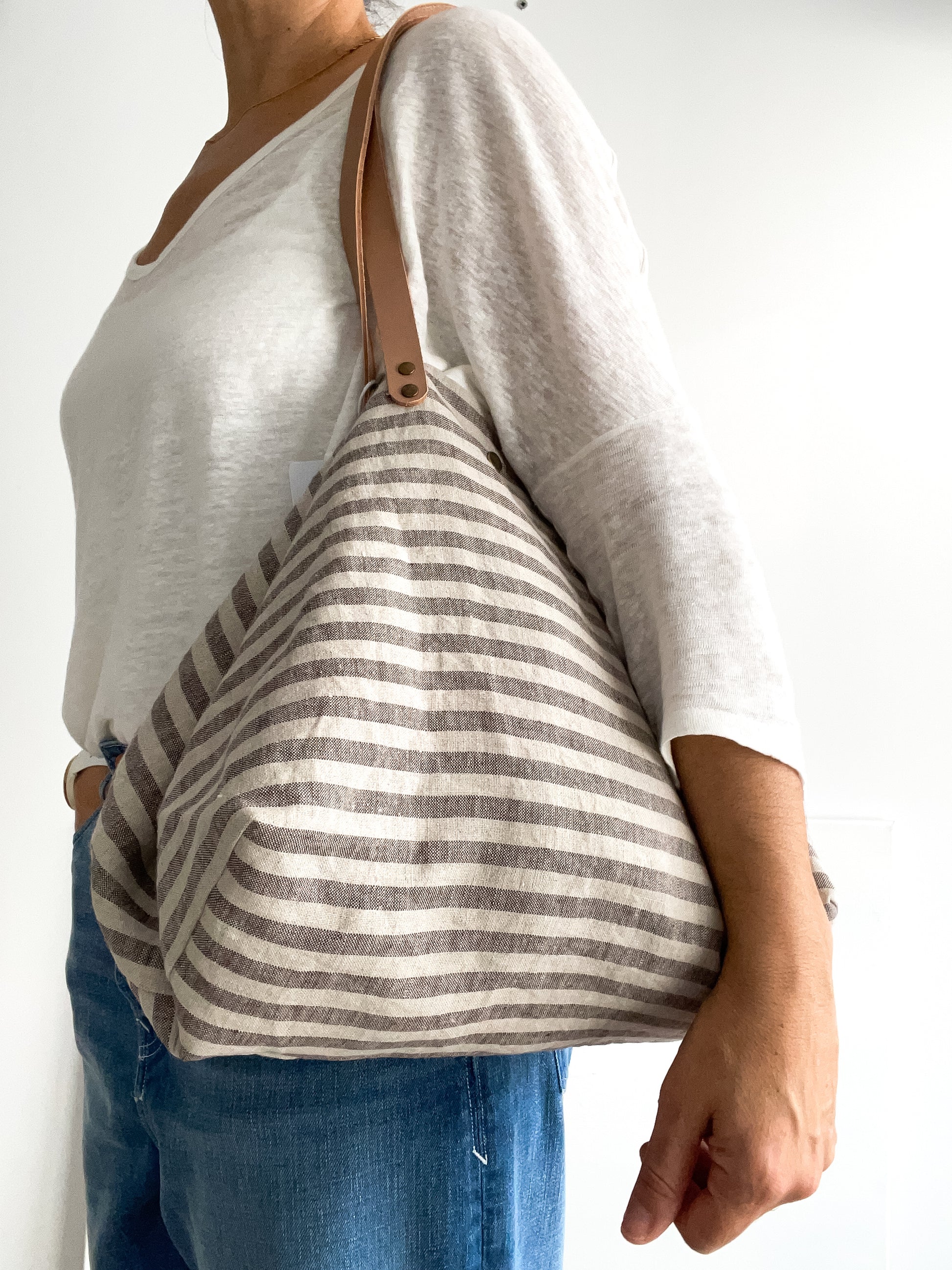Regular-sized tote bag/every day bag, or shopping bag (boho style), with a simple design.
