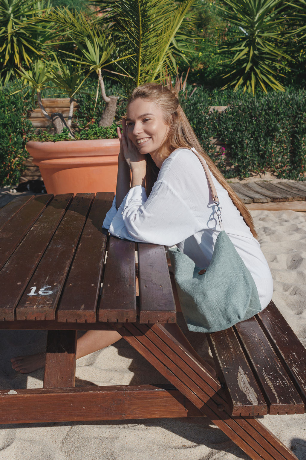 This cross-body bag /tote bag (boho style) has a simple design and is a good combination of stylish and practical. You can wear it with almost everything.